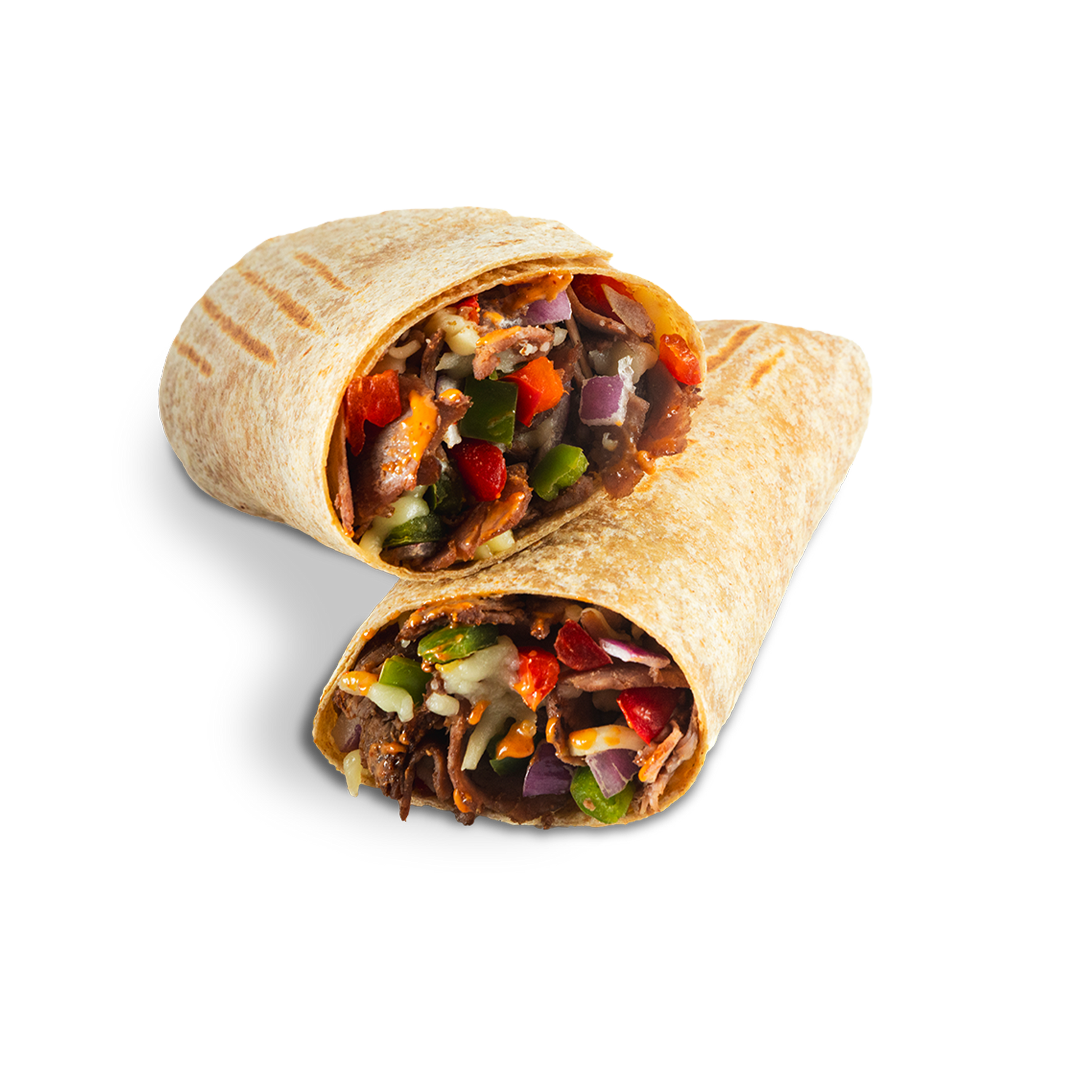Feeling saucy? Indulge in this mix of tender grilled steak, Monterey Jack cheese, chipotle sauce, and a mix of colorful peppers and onions.