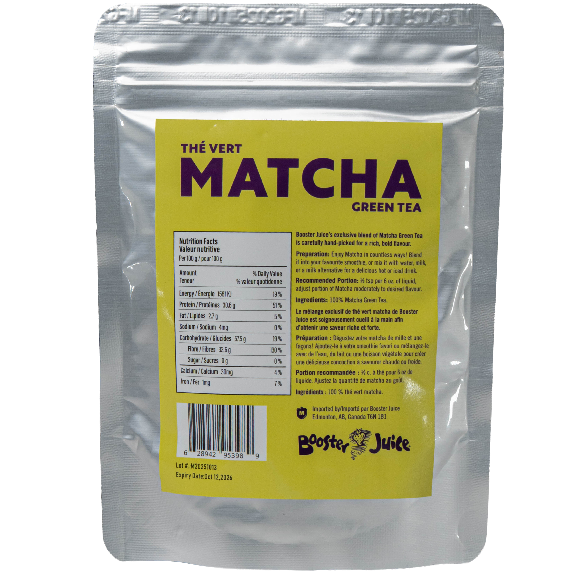 Fuel your day the Booster Juice way with our matcha green tea powder. Smooth, vibrant, and energizing. Whether you are powering through a workout recovery or taking a mindful pause, this green favourite delivers bold flavor and feel-good energy.